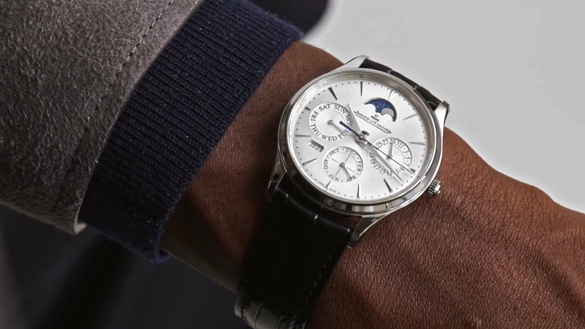 Descrição O Master Ultra Thin Perpetual Calendar apresenta um design extremamente sofisticado que abriga o movimento manufaturado Calibre 868, oferecendo até 70 horas de reserva de marcha. As proporções equilibradas e as asas refinadas da caixa em aço polido garantem um encaixe confortável e elegante no pulso. O mostrador com fundo prateado em acabamento sunray destaca a fase da lua posicionada às 12 horas, além dos ponteiros Dauphine com acabamento acetinado duplo, a escala de minutos em pontos, os marcadores de hora alongados e o logotipo aplicado JL, que reforçam o nível de sofisticação do modelo. Neste calendário perpétuo, os três submostradores exibem a data às 3 horas, o dia da semana às 9 horas e o mês às 6 horas, criando uma leitura equilibrada, precisa e visualmente harmoniosa. Características Caixa Aço inoxidável Diâmetro: 39 mm Espessura: 9,2 mm Resistência à água 5 bar Mostrador Marcadores de hora aplicados Cor prata acinzentada com acabamento escovado sunray Ponteiros Modelo Dauphine